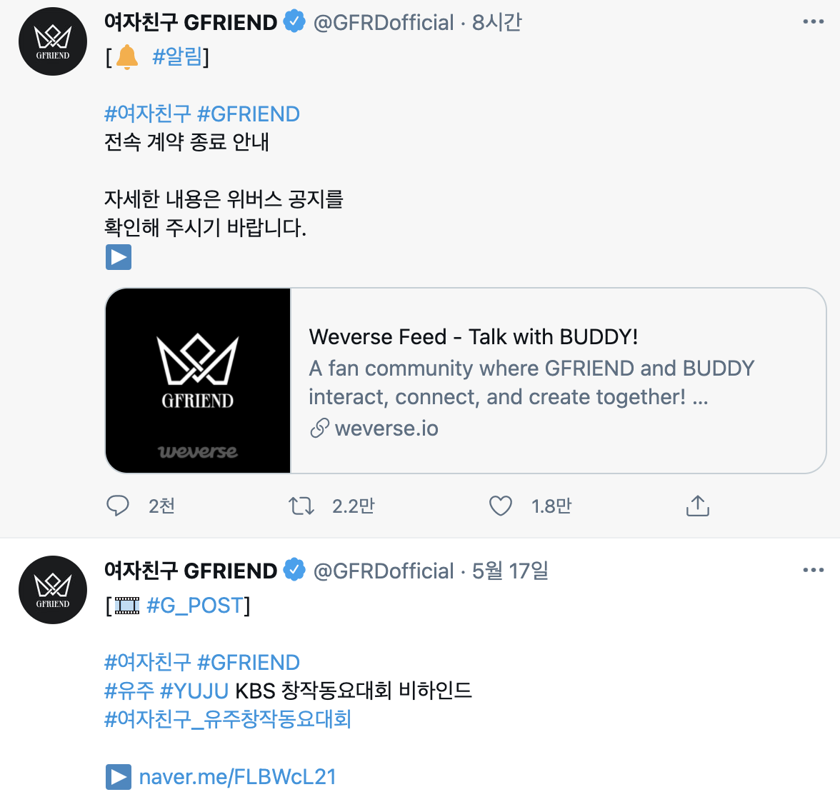 이처럼 전날까지 유주의 kbs 창작동요대회 비하인드를 풀다, 바로 다음날인 5월 18일 해체 입장을 낸 셈입니다.
